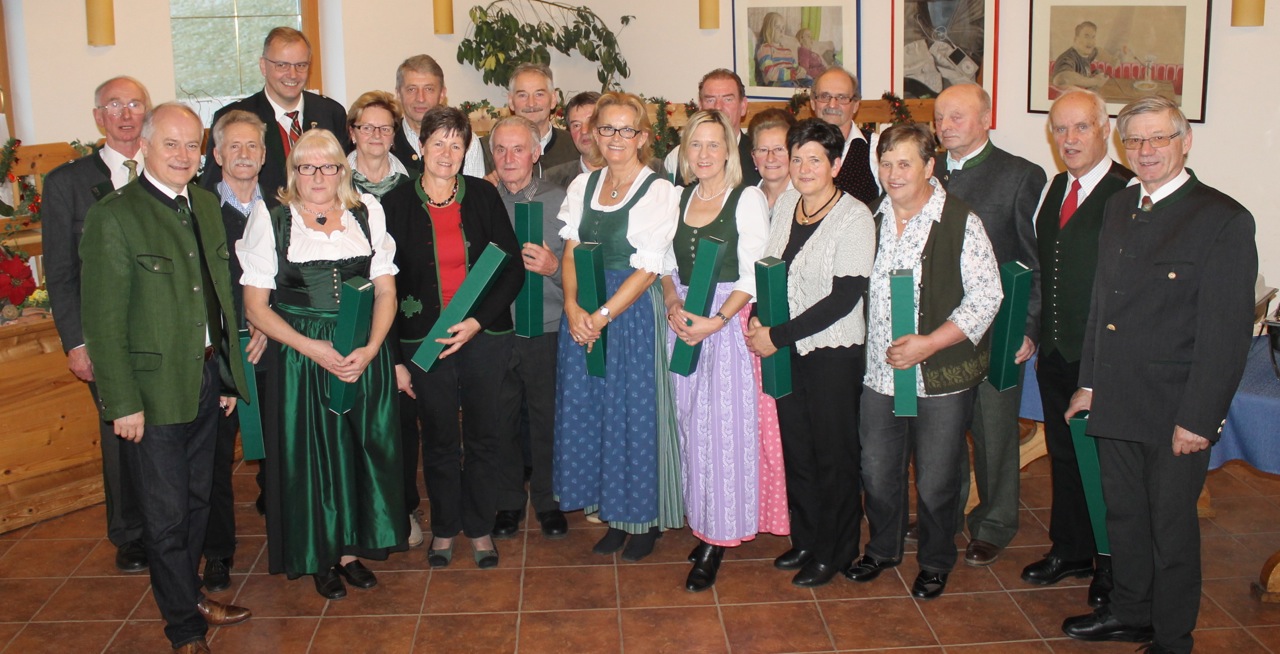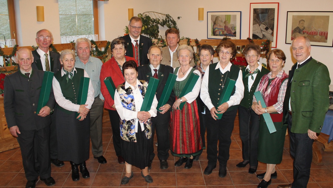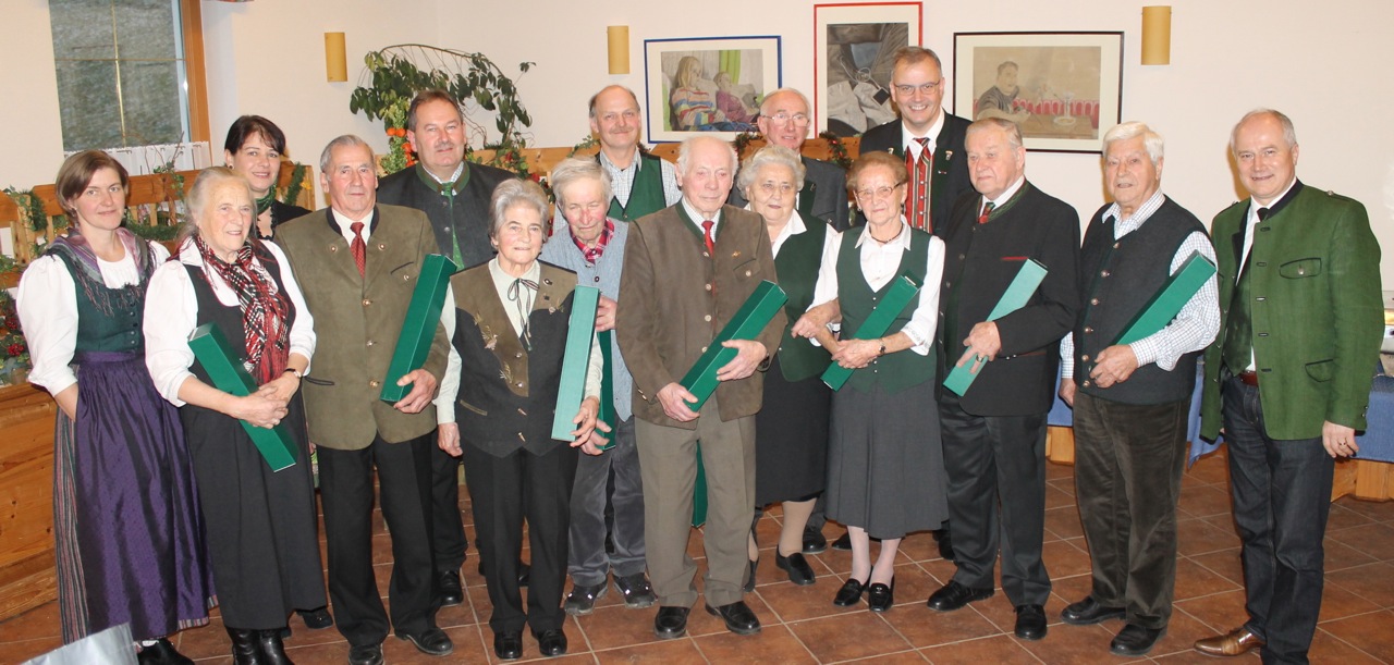 Nach einer beeindruckenden Power-Point Präsentation, bei der die bäuerlichen Höfe, Veranstaltungen und die schöne „Hoamat“ gezeigt wurden, standen die Jubilare im Mittelpunkt.