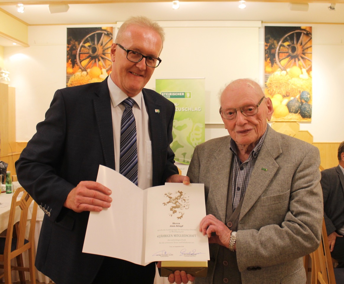 „Wir sind Vertreter der ArbeitnehmerInnen und stehen zu unseren christlichen Werten!“, so der neu gewählte Obmann, der bei der Wahl an diesem Abend 100 Prozent Vertrauen von seinem Team erhielt. Seine Stellvertreter im Bezirk sind Bgm. Eva Schmidinger, Claudia Schobe`, Rudolf Gutjahr, Ing. Helmut Krivec und Stefan Hofbauer. Diese sowie der weitere Vorstand wurden von den Delegierten ebenfalls einstimmig bestätigt. Verdiente Mitglieder wurden für 25, 40, 50 sowie Franz Steiner aus Bruck und Alois Klopf aus Mürzzuschlag sogar für 60-jährige Mitgliedschaft beim ÖAAB geehrt