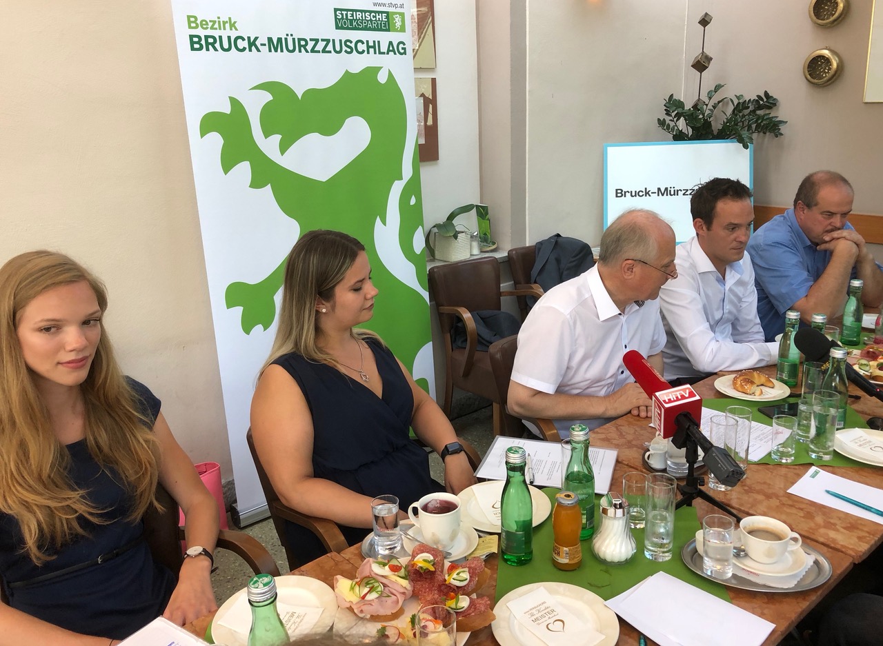ÖVP Bezirksobmann Landesrat Hans Seitinger lud bei äußerst sommerlichen Temperaturen in Bruck an der Mur zur Auftakt-Pressekonferenz und KandidatInnenpräsentation. Mit Martin Spreitzhofer, Eva-Maria Petritsch, Raphael Ebner und Julia Leitner stellte sich ein dynamisches Team für die kommende Nationalratswahl vor.