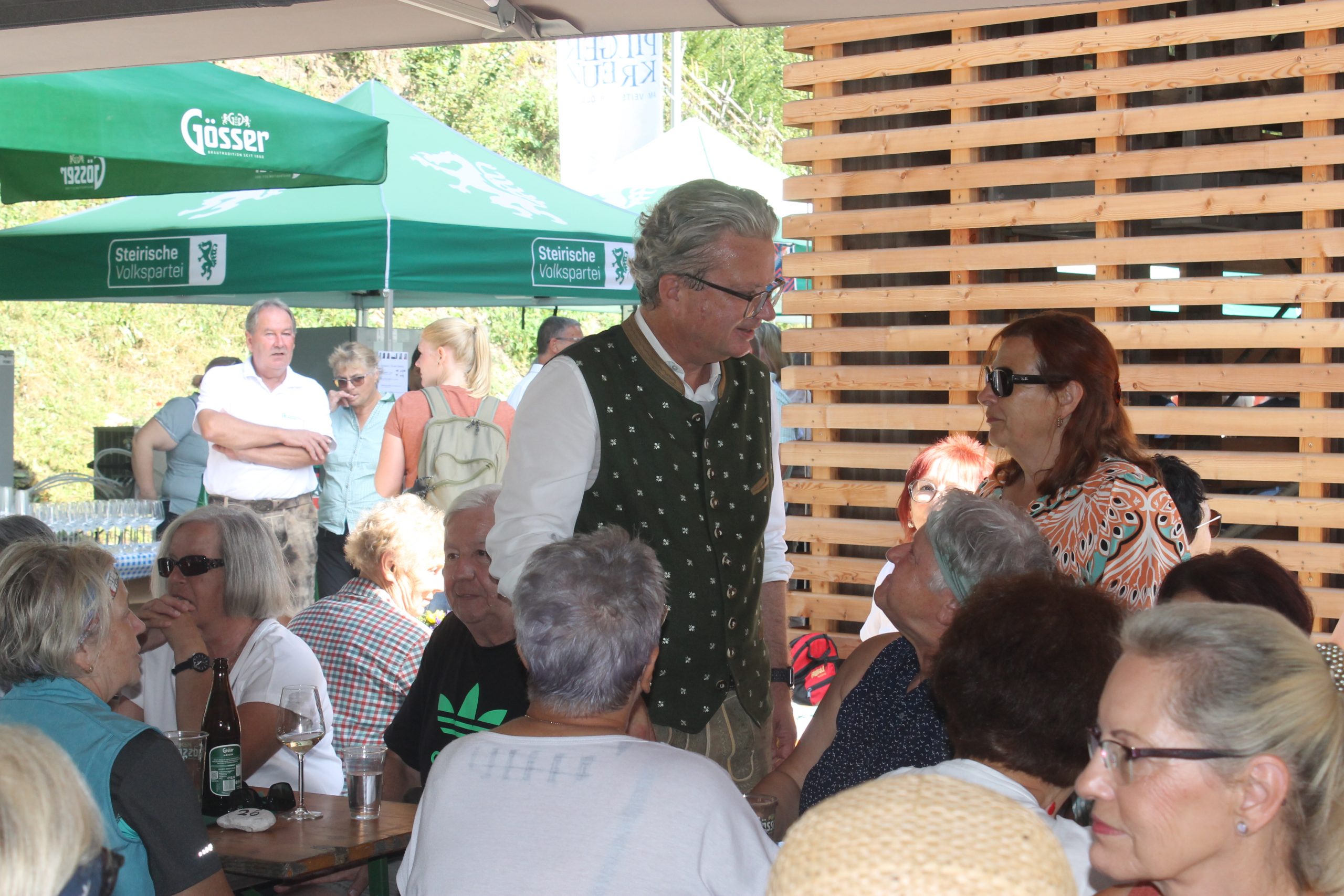 Nach Gedanken zum Kreuz mit Pfarrer Franz Higatzberger und Schauspieler Johannes Silberschneider berichtete Obmann Alois Paar über die Geschichte des Pilgerkreuzes, bevor Bgm. Jochen Jance die Grußworte der Gemeinde überbrachte und schlussendlich Landeshauptmann Christopher Drexler eine erfrischende Festansprache hielt.